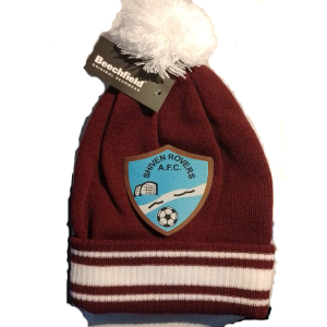 Contrasting pom pom and striped cuff