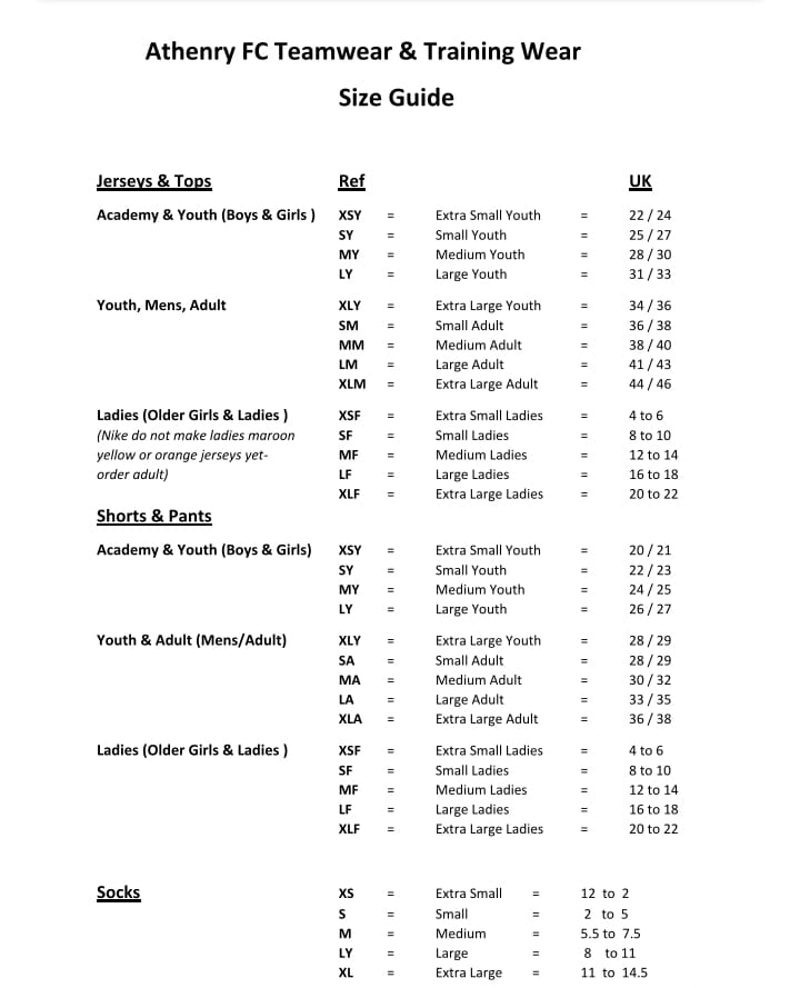 S, M, L, XL, XXL, Xsy, SY, MY, LY, XLY